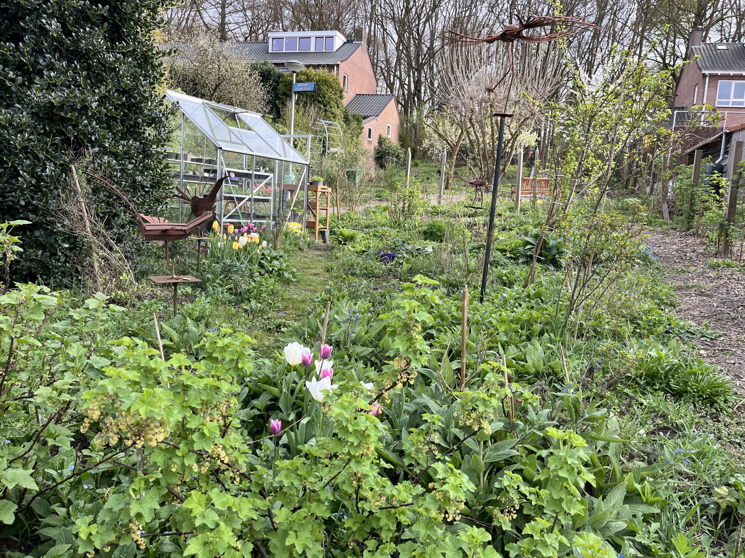 Met meerdere buren onderhouden wij het Moerbeiplantsoen. Elke eerste zaterdag van de maand werken wij samen een middag in onze buurttuin. Daarnaast kweken we in de kleine tuinkas planten op voor het Moerbeiplantsoen en de andere plantsoenen in de buurt.
