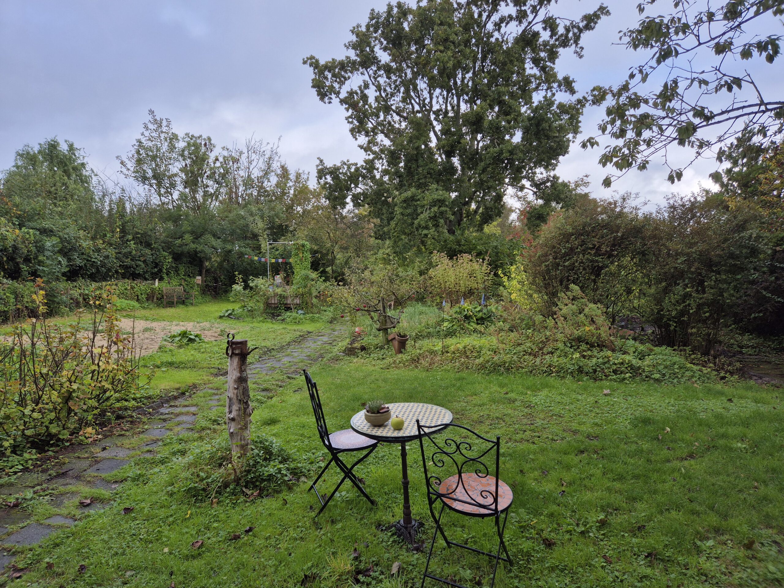We wonen nu een half jaar in deze tuin van 1600m2. De vorige bewoner hield van laat de boel de boel. Dat betekent veel kweek, braam, haagwinde, brandnetel en zevenblad. Dat willen we graag anders. Maar er staan ook twee eiken, een haag van elsen en meidoorn en dat willen we heel graag houden. Dit tuinjaar hebben we de beschoeiing achter laten vervangen en een natuurlijke oever aangelegd. Een oude prumus is eruit en een 10 meter hoge gevaarlijk scheve populier. Volgend tuinjaar moet er iets met het oude zwembad. Onze wens is streekplanten maar veel meer divers dan het nu is.